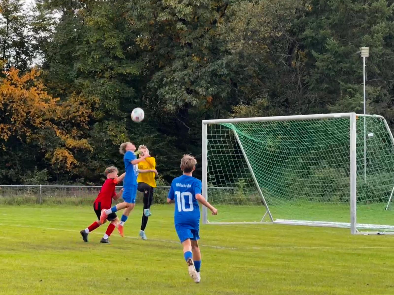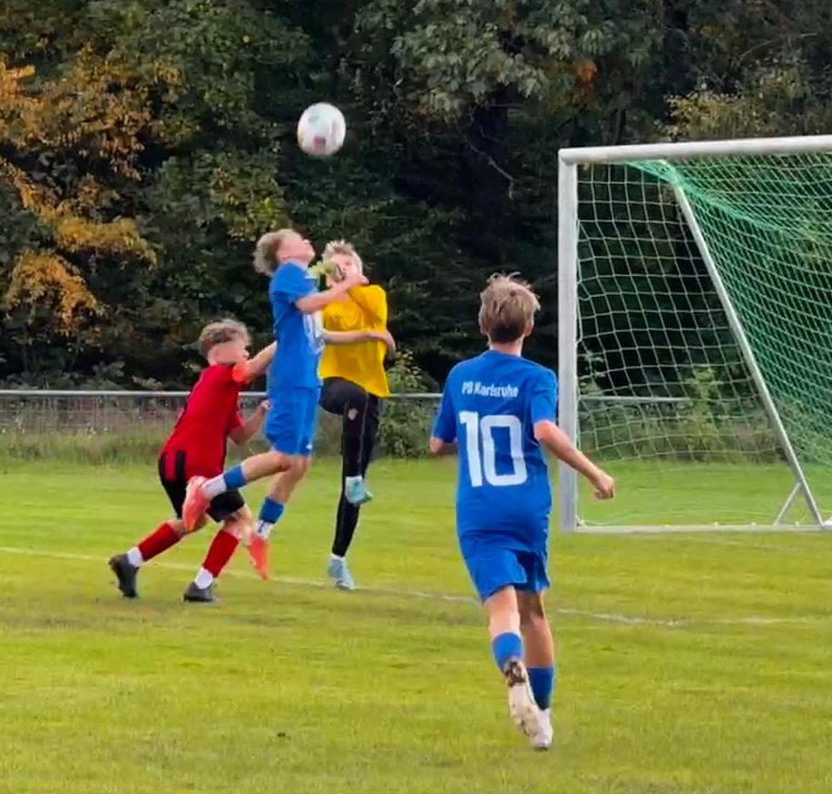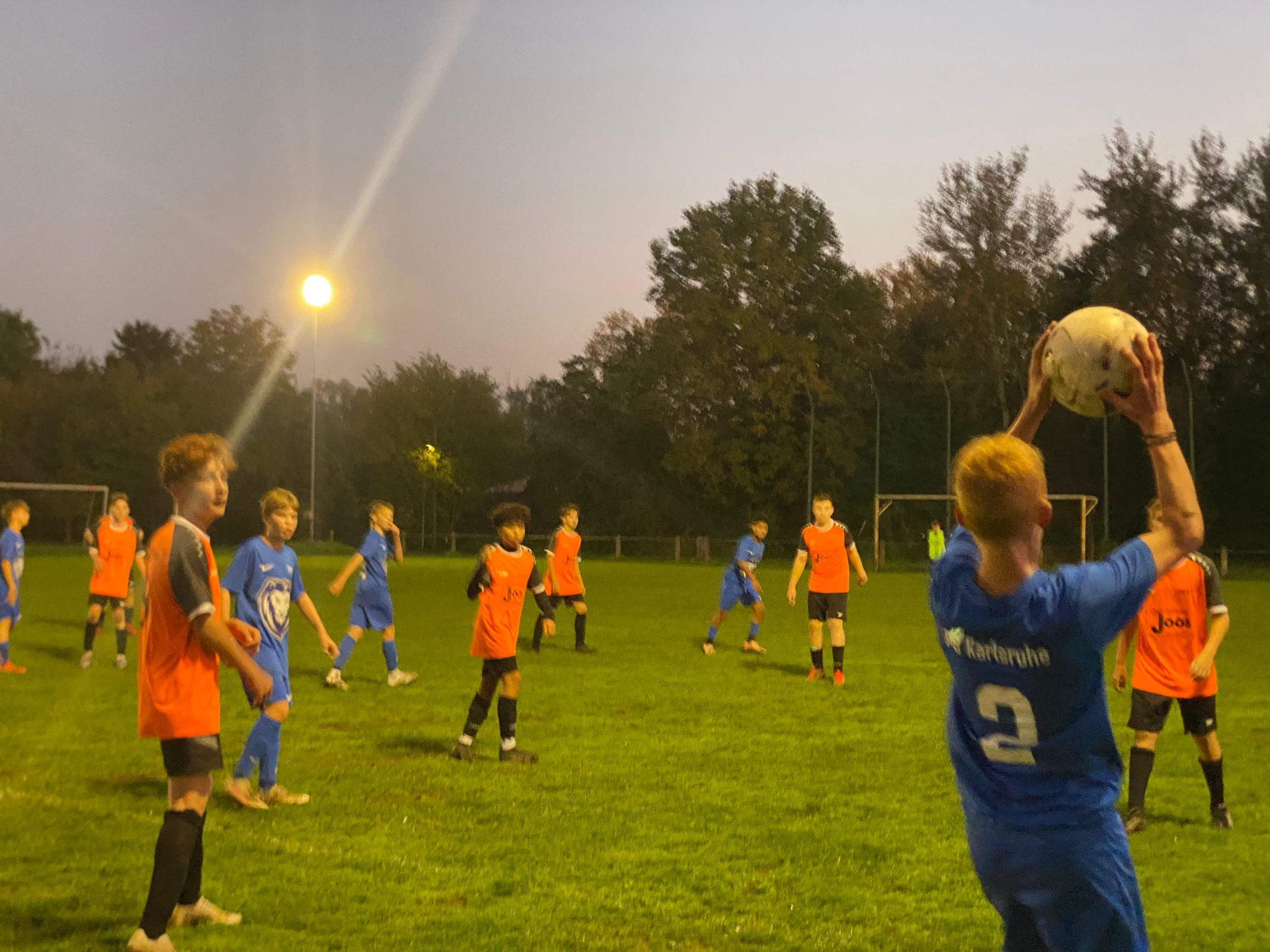 Unser D1-Rudel empfing bereits zwei Tage später zum letzten Spieltag der Kreisliga den SSV Ettlingen. Das Spiel begann mit zehn Minuten Verspätung, da der Busfahrer dem falschen Schiri den Schlüssel aushändigte. Aber das Warten hat sich gelohnt. Zum einen weil unsere Jungs trotz Sommerhitze Tempofußball spielten und die Ettlinger mit 9:1 zurück ins Baggerloch schickten und zum anderen der Schiri Erich Schneider eine sehr starke Spielleitung zeigt. Das war Werbung für die Schiri-Gilde.