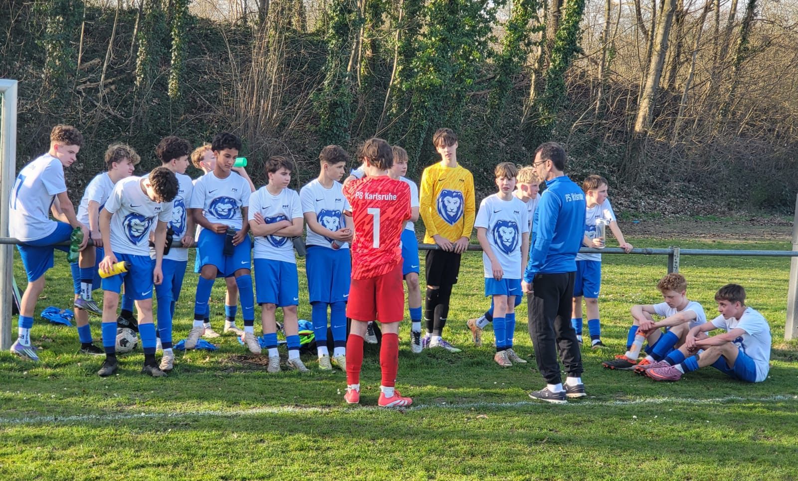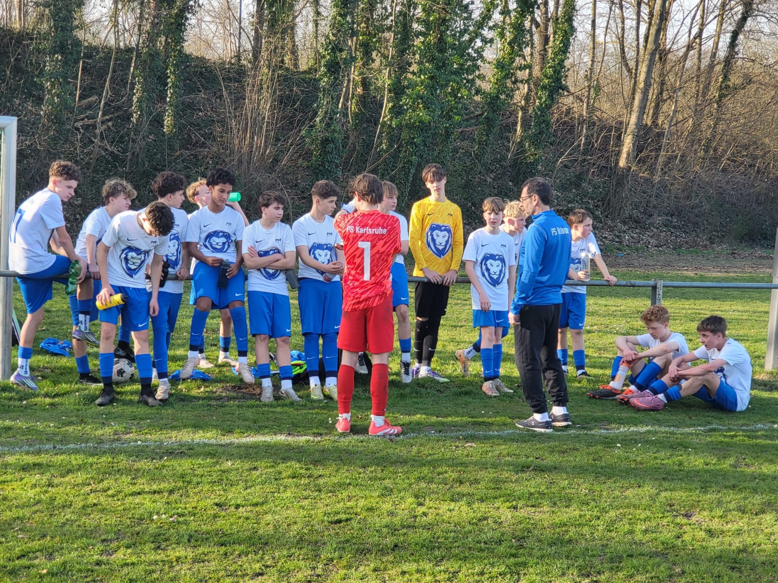 Am Samstag, 26.7.25 ging es zum Saisonabschluss zum U15-Turnier der SG Karlsruhe an die Herzstraße. Kompliment an die SG für die sehr gute Organisation. Da zwei Felder parallel bespielt wurden, gab es keine quälenden Pausen zwischen den Spielen. Gespielt wurde auf Großfeld und 20 Minuten je Spiel. In der Vorrunde standen vier Spiele auf der Agenda. Als in der Woche der Spielplan geleakt wurde, stockte den PSK-Ultras der Atmen. Der Turnieransetzer packte unsere Löwen in die Todesgruppe B.