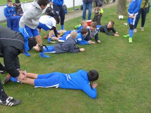 Die erste Aufgabe, die es zu lösen galt: Möglichst viele der 300 vom Ferienpark versteckten Ostereier in den PSK-Korb zu lotsen. Dank der engagierten Unterstützung der Geschwister haben wir hier klar gewonnen. Ja und viele der anderen Fußball-Teams waren zu dieser Zeit schon im Einsatz. Nur die zwei besten Teams je Gruppe hatten ja die Zeit, denn wir durften ausschlafen.