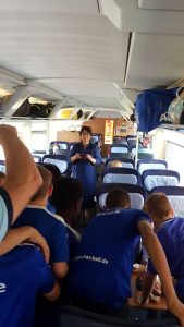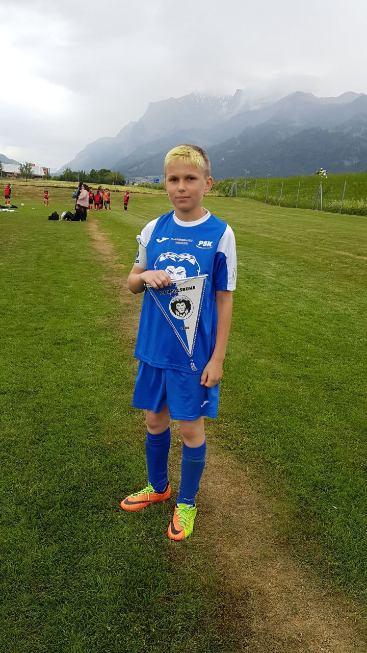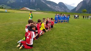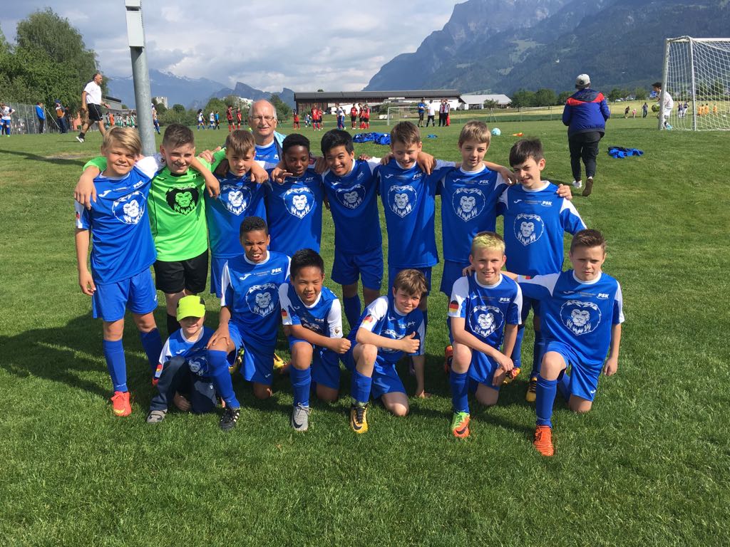 Am Mittwoch, 9.5.18 ging es für 13 erfolgshungrige D-Löwen zum 41. Auffahrtsturnier des FC Landquart-Herrschaft. Mit 30 Minuten Verspätung setzte sich unser ICE in Richtung Graubünden in Bewegung. Unsere Löwen sorgten im ICE sofort für Begeisterung bei den anderen – überwiegend weiblich – Mitreisenden. Eine Frauenreisegruppe nach Freiburg war komplett außer Häuschen. „Sind das wirklich die Löwen aus Karlsruhe?“ Klar, wer sonst! Als Kieran dann noch seine Knoppers mit den Damen teilte, begann eine Lebensabschnittsbeziehung (von Karlsruhe bis zum Bahnhof Freiburg).