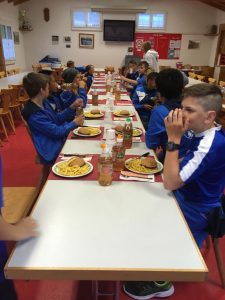 Im fünften Spiel dann das Spitzenspiel. Der Gruppen-1. SC Brühl gegen den Gruppen-2. PS Karlsruhe. Brühl gab Luke ausreichend Gelegenheit sich auszuzeichnen. Unser Keeper mit drei Glanzparaden. Unseren Jungs fehlten die Kräfte, um den SC Brühl unter Druck zu setzen. Vor dem letzten Vorrunden-Spiel füllten die Jungs ihre Akkus beim Teamessen.