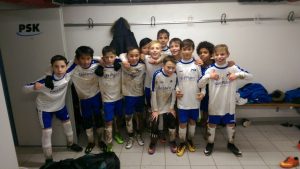 Auf schwerem Boden übernahmen unsere Jungen von Anfang an die Initiative. In der 12. Minute setzte sich Elias auf der linken Seite durch und spielte den Ball in den Strafraum. Hier ließ sich Freddy nicht zwei mal bitten. Er brachte unseren PSK 1:0 in Führung. In der 14. Minute nutzten die Gäste einen Passfehler im Mittelfeld. Sie machten es jetzt schnell und ließen Luke in unserem Kasten keine Chance. Folgerichtig stand es 1:1. Da unsere Löwen weitere Chancen nicht nutzen konnten, ging es mit diesem Spielstand in die Pause.