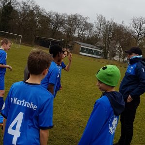 Eigentlich sollte die Rückrunde schon vor einer Woche starten. Aber pünktlich zum Beginn der Rückrunde meldete sich der Winter zurück. Also legten unsere D2-Löwen am letzten Wochenende eine zusätzliche Trainingseinheit in der Europaarena ein. Aber heute war es dann endlich soweit. Es ging zum FSSV Karlsruhe.