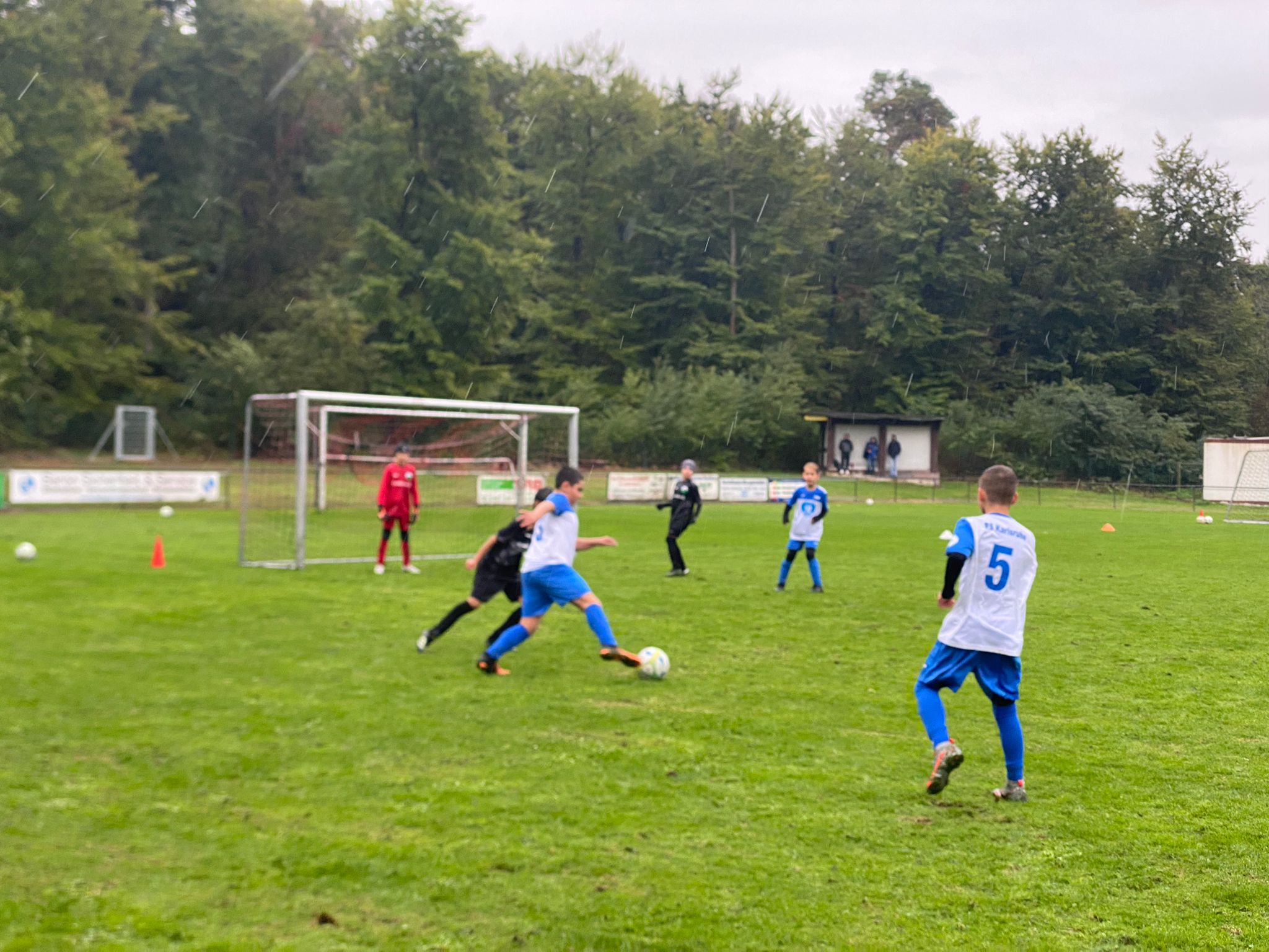 Am Freitagnachmittag verkündeten Rauchzeichen aus Wettersbach die Absage des 3 vs. 3 Spieltages. Nachdem sich die Eltern bereits mental den Samstag-Vormittag auf heimischen Sofa vorstellten, die Kehrtwende. Die E1-Löwen reisen zum Freundschaftsturnier nach Linkenheim. Auf dem Platz fünf Spiele je 15 Minuten bei strömenden Regen und giftigen Windböen. Neben dem Platz durchnässte und frierende Schlachtenbummler.