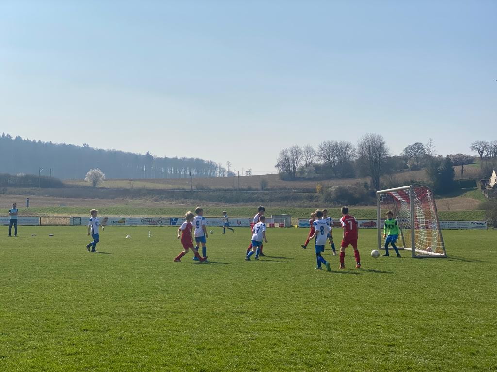 Es braucht nicht viel zum Glück: Sonne, grüner Rasen und eine 290g schwere Kugel. Dazu hoch motivierte E-Jugendliche in rot und weiß.