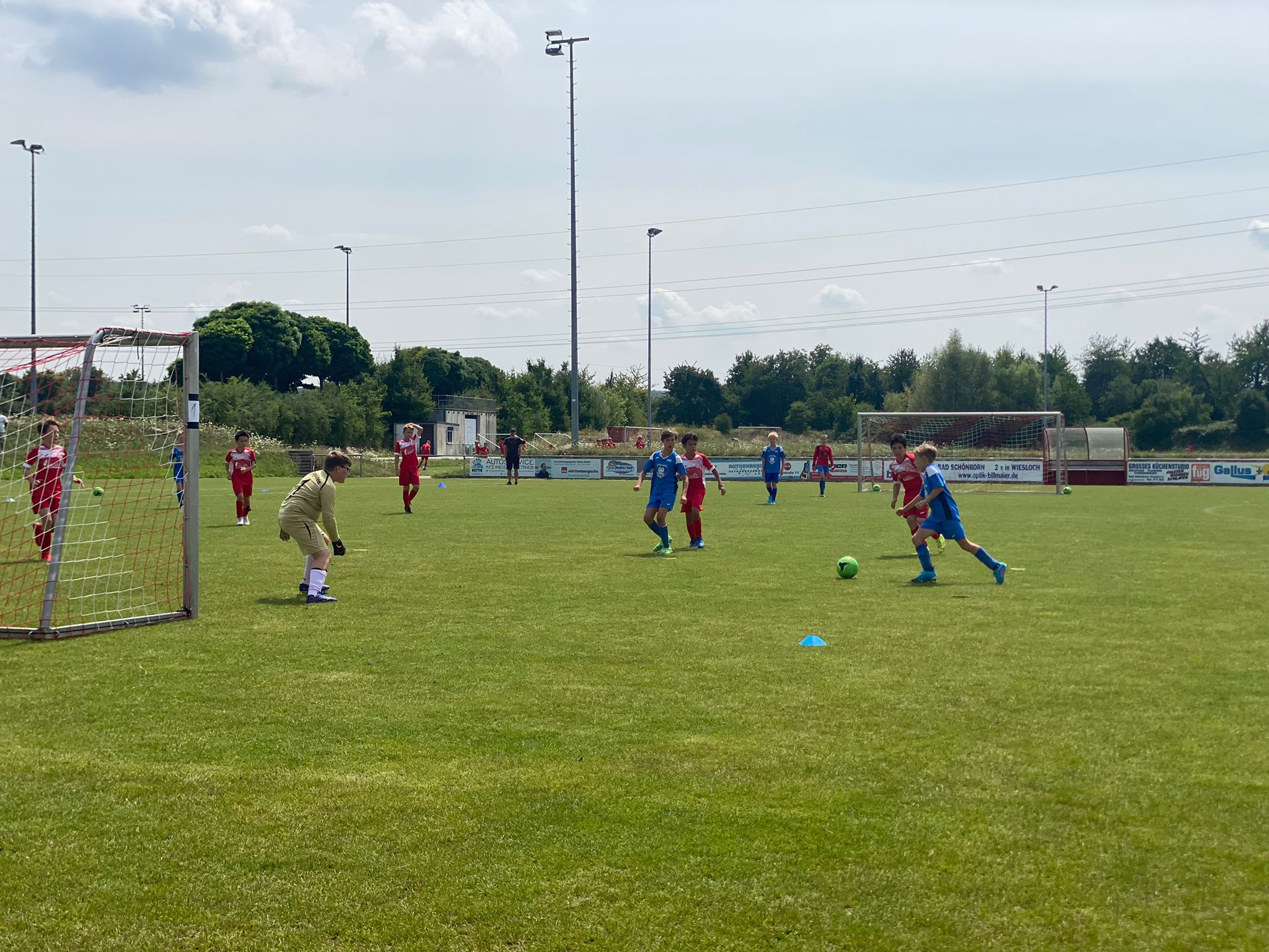 Alles wie immer. Wir hatten noch drei Spiele um die Niederlage zu korrigieren. Gegen den FV Hambrücken traf Patryk in der zweiten Minute das Außennetz. Wenige Sekunden später entschärfte der Hambrückener Keeper den Schuss von Patryk. Bares‘ Freistoß konnten die Hambrückener Buben blocken. So dauerte es bis zur 13. Minute. Patryk passte diagonal zu Finn. Und Finn versenkte zum 1:0. Wenige Sekunden vor dem Schluss scheiterte Fritz gegen den Hambrückener Keeper vom Punkt. Felix entschärfte vier Schüsse auf sein Tor. Trotz des klaren Chancenplus trug am Ende die Jury nur ein knappes 1:0 ein.