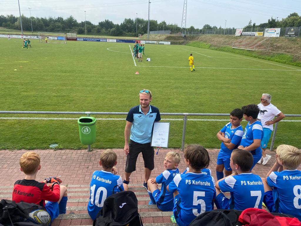 Am Samstag, 23.7.22 ging es für die E1-Löwen zum Saisonabschluss zum E-Junioren-Turnier des Turn- und Sportverein 1901 Mingolsheim. In der Vorrunde warteten vier Spiele auf unsere U11-Buben. Jedes Spiel dauerte 14 Minuten. Der sehr gut gepflegte Rasen machte Lust auf Fußball. Hatte es in den frühen Morgenstunden noch geregnet, verwandelte die Sonne den Sportpark Mingolsheim in eine Bio-Sauna.