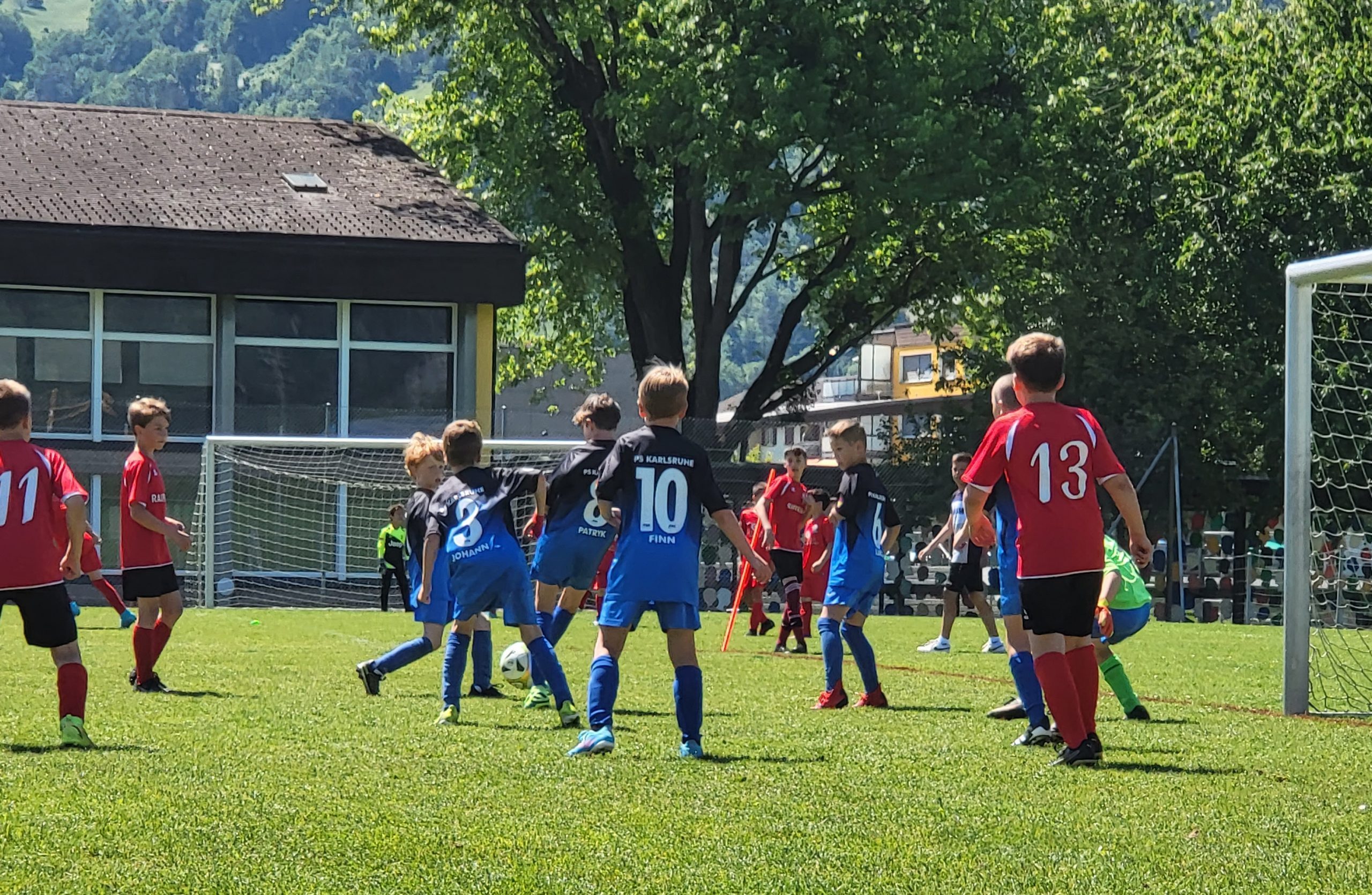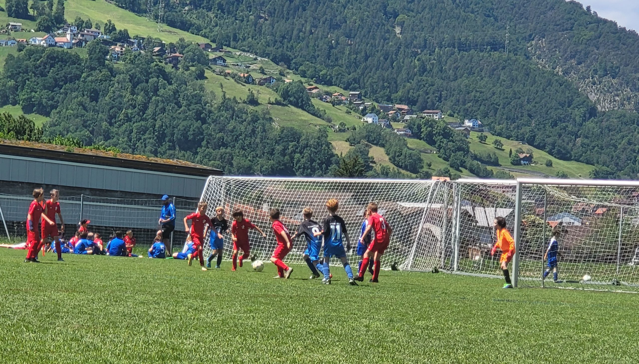 Die Aufregung bei den Buben war greifbar. Sie spurteten förmlich zum Sportplatz. Jan, Urs und seine Frau füllten die Energiespeicher unserer Jungs mit einem vorzüglichen Frühstück. Saftiges, kurz geschorenes Grün am Fuße der Graubündner Alpen, strahlender Sonnenschein und zahlreiche Zuschauer steigerten die Vorfreude weiter.