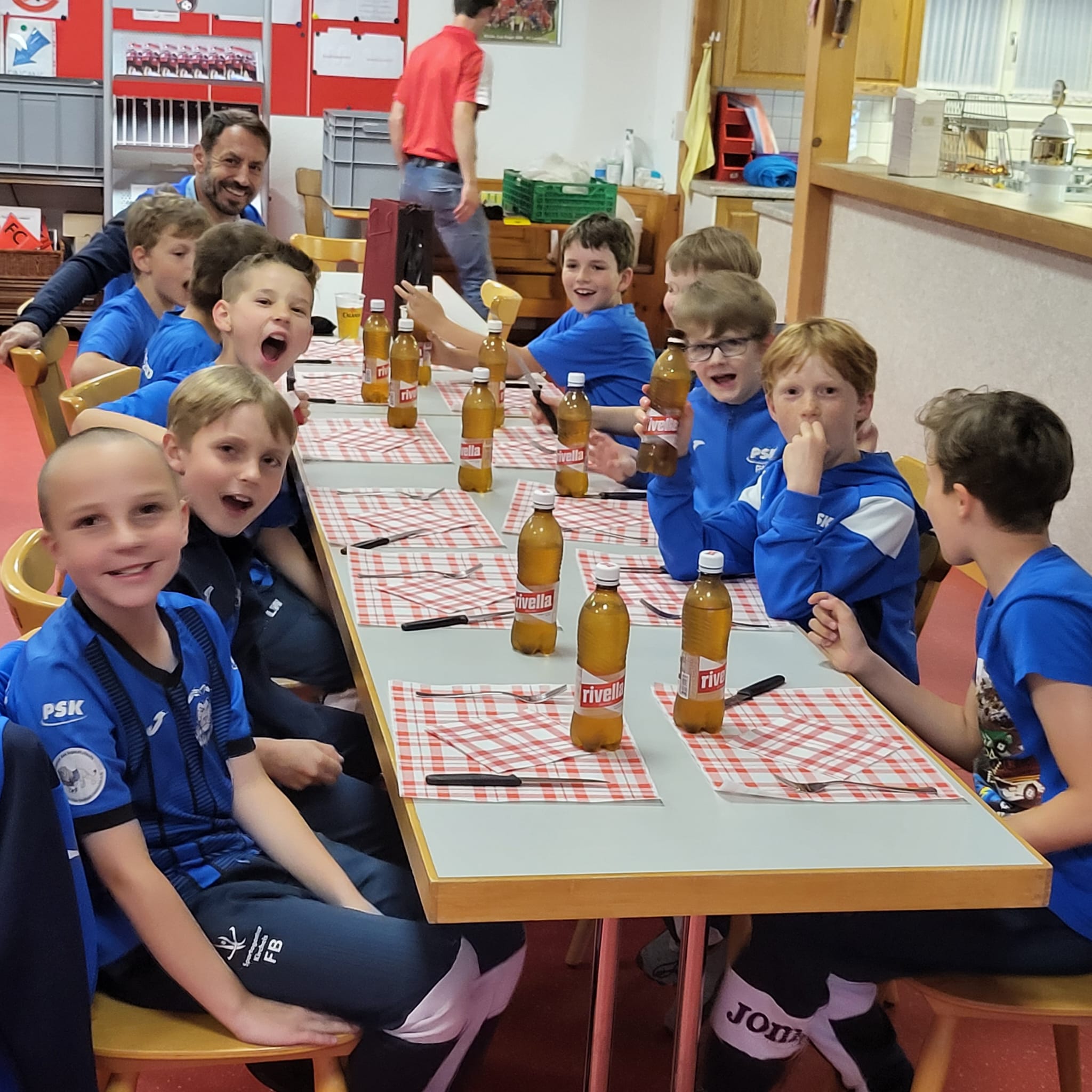 Mit dem blauen Auge ging es in die Mittagspause.  Eine Portion Ravioli mit Tomatensauce später ging es gegen den FC Kölliken b. Unsere Jungs hatten in zwölf Minuten mehr Chancen als der KSC in einer Saison. Aber das Tor war wie zugenagelt. Einzig Patryk traf. Da Anton alle Kölliker Chancen entschärfte, konnten wir die Punkte fünf, sechs und sieben einfahren.