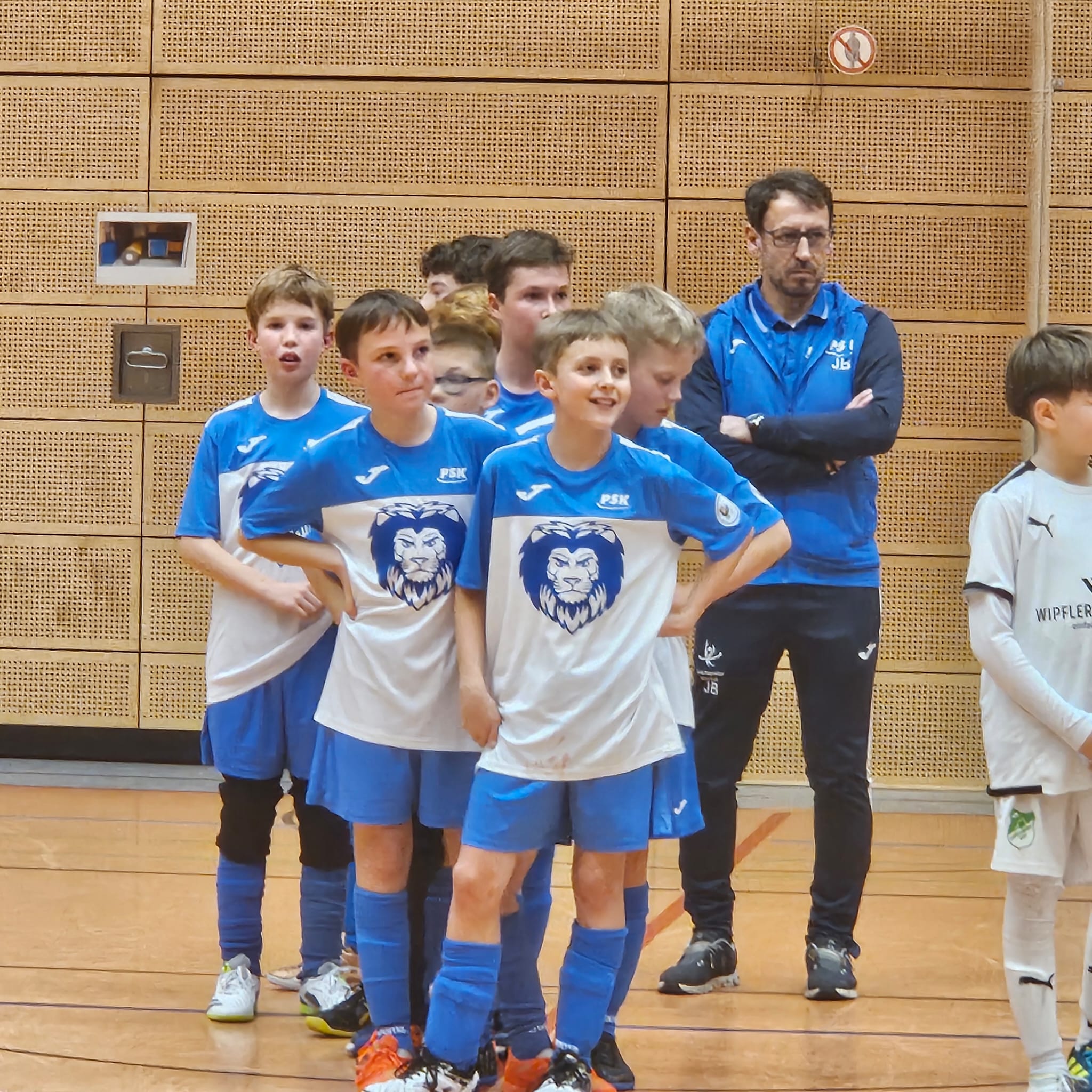 Nachdem Nordwest sogar gegen den Favoriten Friedrichstal ein Remis holte, standen unsere Löwen gegen Aue schon unter Druck. Die erste große Chance hatten die Aumer Jungs. Nach 2 Minuten 30 Sekunden schoben sie die Kugel am leeren Löwen-Gehäuse vorbei. Dann aber wurde es ein Spiel auf ein Tor. Es spielte nur noch der PSK. In Minute fünf der Aumer Keeper mit einer Monsterparade gegen Finn. Nur 45 Sekunden später prüfte Mauro den Pfosten. Nach sieben Minuten 10 Meter für den PSK. Die grenzwertig spielenden Aumer Boys hatten bereits fünf Teamfouls. Patryks Ball konnte der Keeper noch klatschen lassen. Den Nachschuss setzte Finn an die Latte. Der Gästeblock flippte aus. Zwei Minuten vor dem Ende scheiterte Patryk am Aumer Schlussmann. Mit der Schlusssirene hatte Fritz noch einen weiteren 10m. Aber die Aumer Katze bekam die Finger dran. Endstand: PSK vs. Aue 0:0.